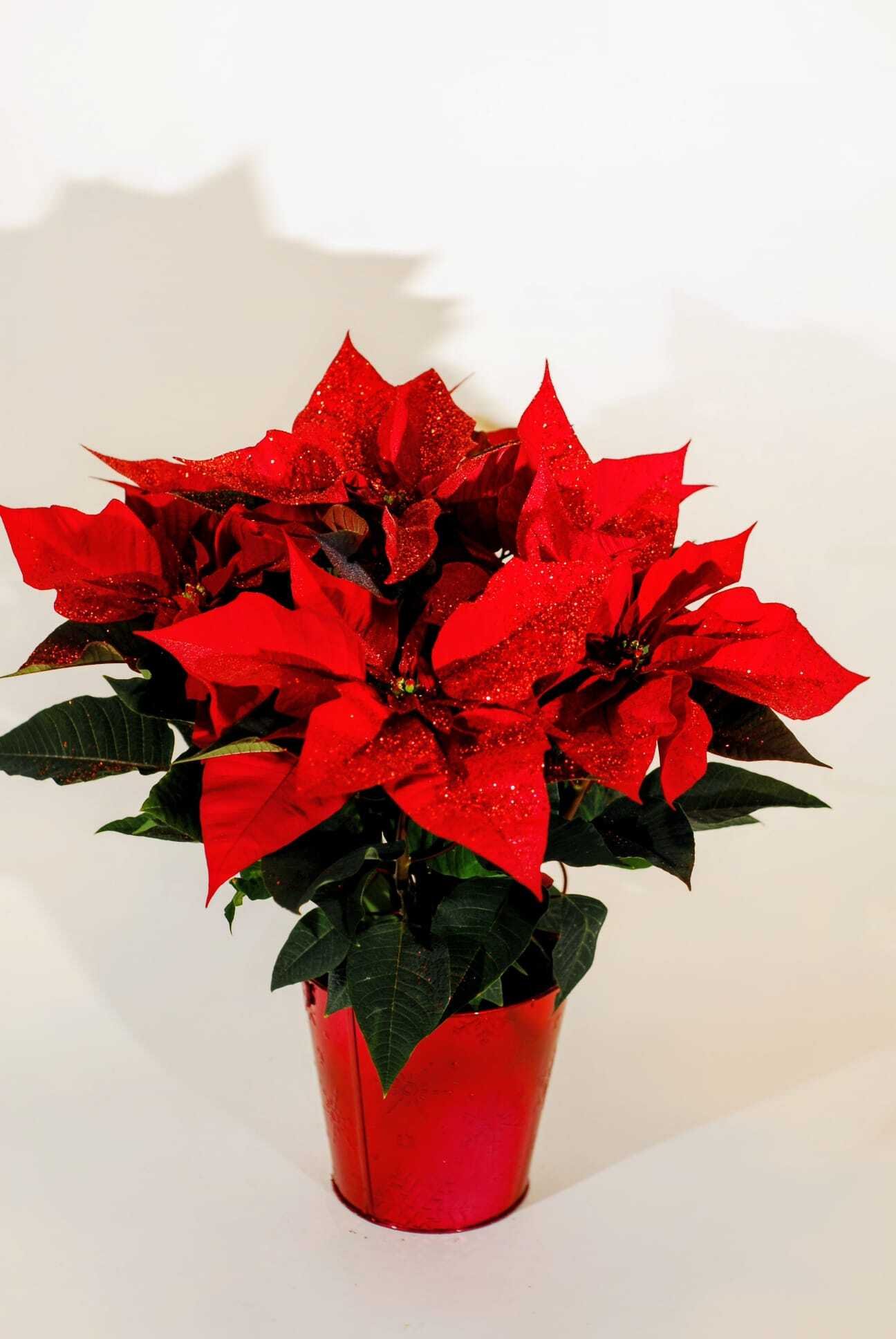 Flor de pascua con recipiente de cerámica