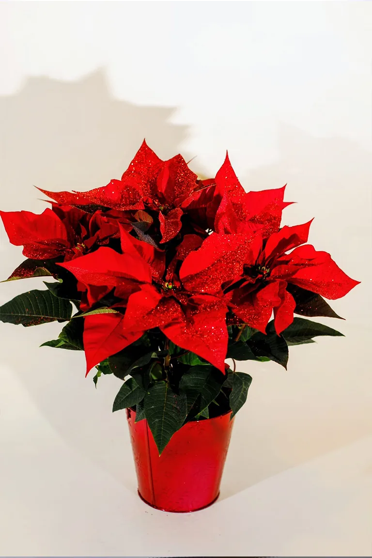 La planta estrella de la Navidad. Incluye un elegante recipiente de cerámica que realza sus brácteas rojas, siendo el símbolo decorativo por excelencia de la temporada.